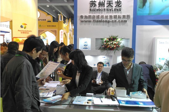 苏州天龙制药经由全心的策划,,,,,选择了位于9.2馆D展区的特装展位,,,,,以专业眼科企业形象亮相,,,,,展位设计气概简朴开放,,,,,充分的向来自天下各地的医药人展示了天龙制药作为专业眼科制剂生产企业的风范,,,,,公司的重点产品如NG娱乐相信品牌力量官网珍珠明目滴眼液(胶体溶液)、乐沁丙美卡因滴眼液和苏春珍珠明目滴眼液等主要产品也在会上举行了盛大推介,,,,,吸引了大批的专业观众前来相识和洽谈,,,,,公司全体参展职员热情专业并对观众提出的问题逐一解答,,,,,同时为了配合展会,,,,,公司在医药经济报、21世纪药店报、医药手机报、新浪微博等专业媒体上宣布了公司的硬软文信息,,,,,展示了公司产品,,,,,撒播了公司的品牌。。。。。公司向导也亲临展会现场并与客商洽谈交流。。。。。